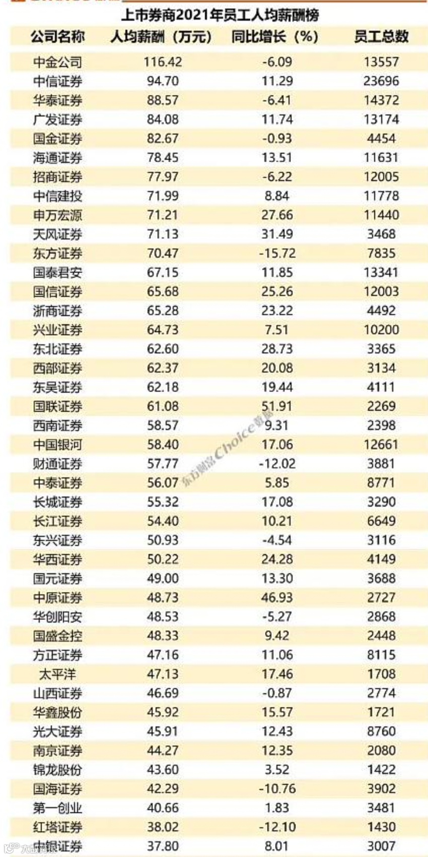 数据显示,2021年,中金公司人均薪酬高达116万,中信证券95万,华泰、广发、国金则超80万,招商、中信建投、海通等超过70万。