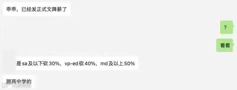 有消息传出某头部券商已经正式发文要降薪了,SA级别及以下降薪30%,VP到ED级别的降薪40%,MD级别及以上的降薪50%。
