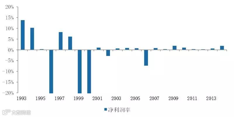 图5:特力A净利润率变化(1993-2014)