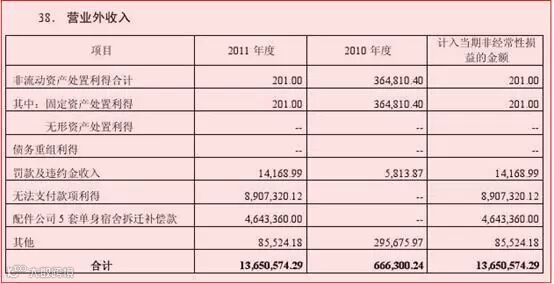 答案便是公司各类神奇的营业外收入,是它们的存在保证了公司持续稳定的上市资格(以及不被ST处理)。下面的图片就是最近几年公司各类名目繁多的营业外收入截图,其中只放置了比较有代表性的两张图片,里面的科目包括固定资产处置利得(卖地卖房子)、债务重组利得、罚款收入(罚款也能获得收入)、房改补差(这也可以)、违约金收入、无法支付款项利得(就是本来应该支付的应付款项耍赖不给了)、配件公司5套单身宿舍拆迁补偿款(这都是什么gui,好吧小编佩服公司的智慧)。此外尽管今年前三季度特力A实现了盈利,但让我们来看看特力A的盈利来自什么:本期因终止相关退休职工福利计划,冲回长期应付职工薪酬及期间费用972万元,致利润总额增加972万元、归属于上市公司股东的净利润增加849万元,原来是取消了公司员工的福利,从而实现了盈利啊(I真的服了U)。