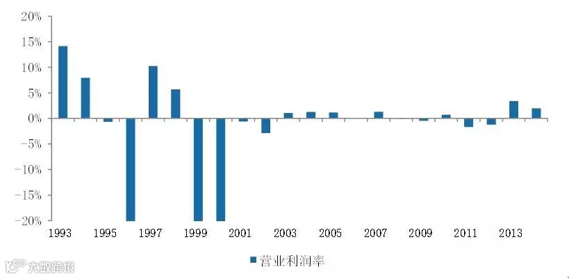 图4:特力A营业利润率变化(1993-2014)