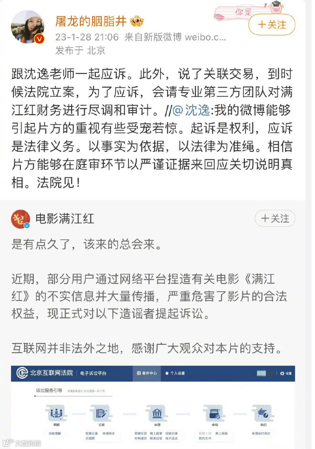 满江红已经正式提起诉讼,针对此事引起网友一阵热议。