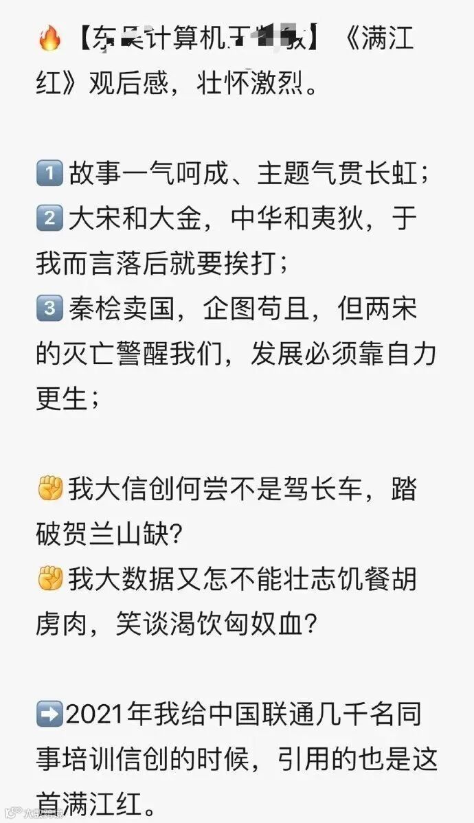这位首席分析师好似《满江红》剧中哪位精忠报国的勇士灵魂附体,慷慨激昂,激情抒发报国之志,并对从事研究的领域充满信心,让金融同行看到后纷纷表示钦佩。
