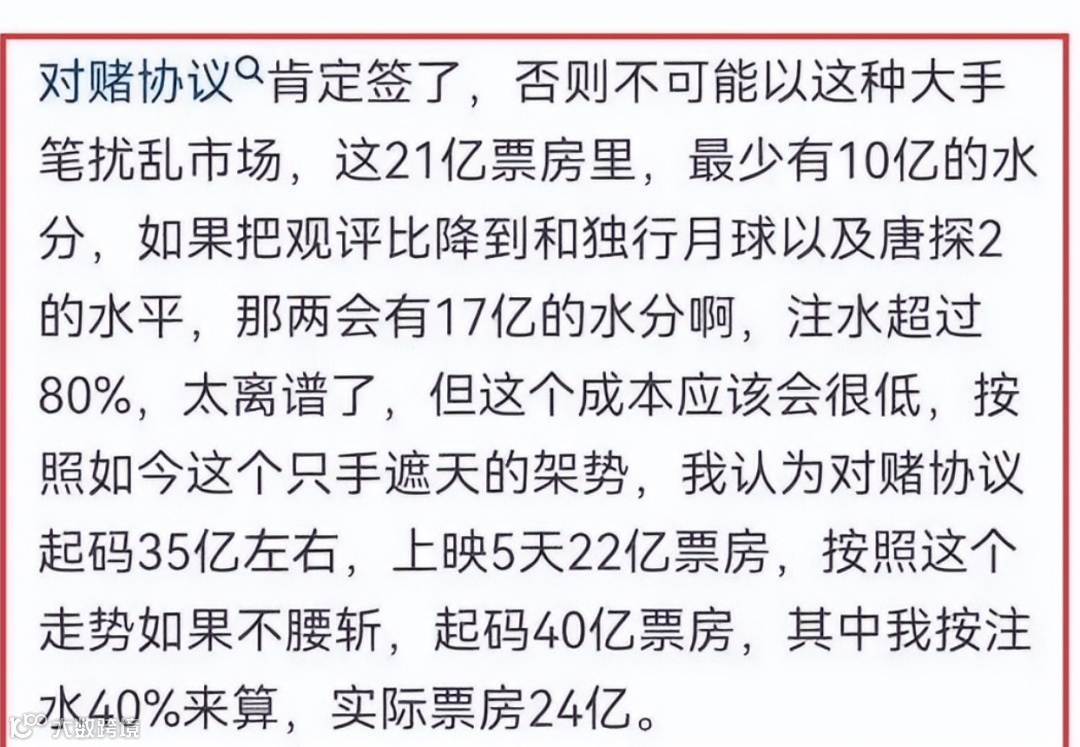 另外,也有网友扒出,电影《满江红》疑似签了对赌的协议,所以搞了票房注水的手段,总而言之,虽然说表面上看起来电影《满江红》的形势一片大好,票房也已经突破了29亿,但是其口碑真的是快稳不住了。