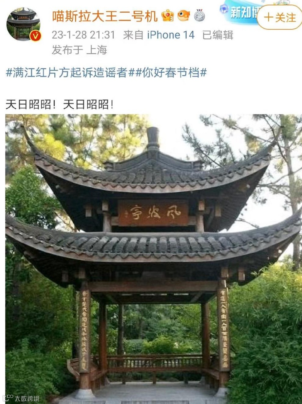 @喵斯拉大王二号机 发布了一张风波亭照片,并借用岳飞绝笔“天日昭昭,天日昭昭”,回应片方这一举动。