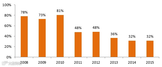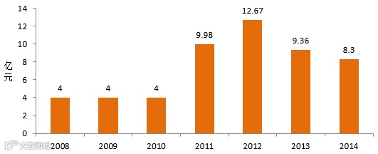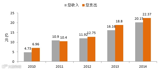 中超公司2014年总收入超4亿元,成为职业化以来收益最高的赛季,但整体仍处于亏损状态,亏损额度比2013年有小幅下降,为2.22亿。俱乐部层面盈利情况仍不乐观。2014年中超俱乐部整体仍处于亏损状态,只有广州恒大、贵州人和、上海东亚、上海申鑫、广州富力5家俱乐部实现盈利,2013年则仅有广州恒大和辽宁宏运盈利。整体看来,中超俱乐部仅有2011年实现微利,其他年份均有不同程度的亏损。此外,目前中超90%的营收来自于商业赞助,转播权与衍生品开发占比依然较低。我国足球产业仍有较大的提升空间。