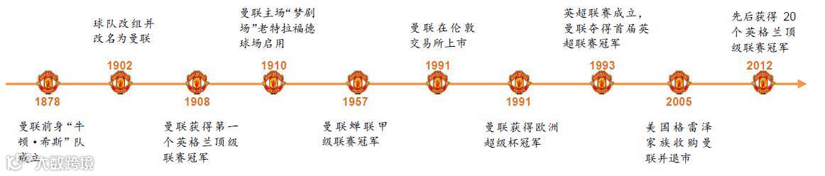 曼联的前身是1878年英国兰开夏郡和约克郡铁路公司的工人成立的“牛顿•希斯”足球队,1902年改组并改名曼联,1991年在伦敦交易所挂牌交易。曼联历史上共获得20次英格兰顶级联赛冠军,11次英格兰足总杯冠军,4次英格兰联赛杯冠军。在欧洲赛场上,曼联共获得3次欧洲冠军联赛冠军,1次欧洲优胜者杯和1次欧洲超级杯冠军。曼联的辉煌战绩在全球吸引了上亿球迷,是世界上球迷最多的俱乐部之一。