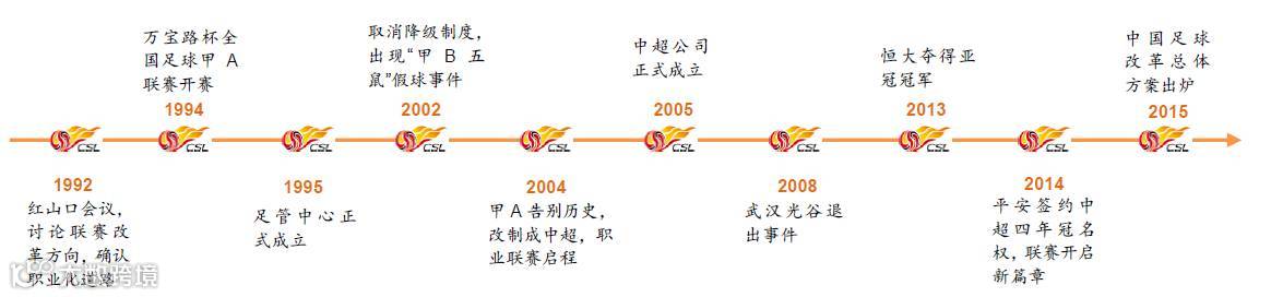 与成熟的五大欧洲足球联赛经营模式相比,我国足球联赛起步较晚,商业化经营仍处于初级阶段。目前中国足球职业联赛分为中国足球超级联赛、中国足球甲级联赛和中国足球乙级联赛三个等级。其中中国足球超级联赛(CSL,简称中超联赛)是由中国足球协会组织的,是中国大陆地区最优秀的职业足球俱乐部参加的全国最高水平的足球职业联赛。中超联赛始于2004年,起源于中国足球甲级A组联赛,2004年起由福特宝公司经营,2005年逐步过渡给中超委员会。2006年4月中超公司成立,正式接管联赛经营。