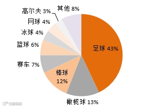 足球是世界上产值最高、受众最广泛、影响力最大的体育运动,为体育产业最大的单一项目。世界范围内足球产业年生产总值达5000亿美元,被称为“世界第17大体”,超过了瑞士、比利时等国家和地区GDP,是当之无愧的是世界第一运动。根据《2015足球俱乐部排行榜》,世界范围内足球产业年产值超过5000亿美元,占体育产业总产值的占比超过40%,远超橄榄球、篮球、排球等项目。