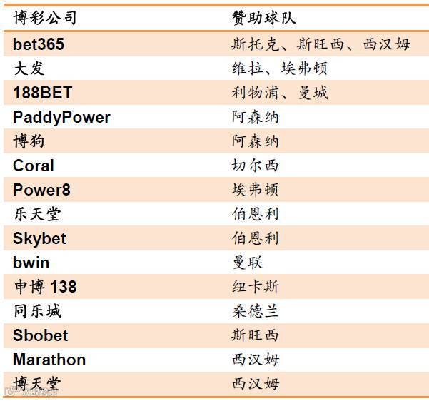 图表32. 2014/2015赛季博彩公司赞助英超球队列表