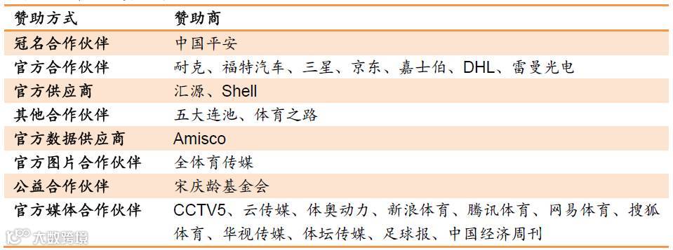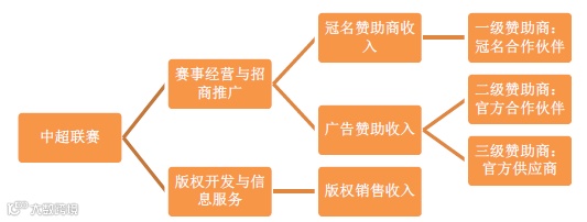 除了市场化进程推进以外,受益于赞助收入的快速发展,中超公司近年来收入快速增长,体现了中超联赛越来越强的吸金能力。中超公司的收入可以分为主要赞助商的冠名赞助收入、其他赞助商的广告赞助收入和中超赛事版权的销售三个部分。