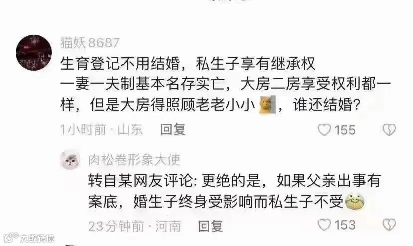 以前认为的私生子一夜算转正了,以后男女都可以随便找人生娃,国家都承认。