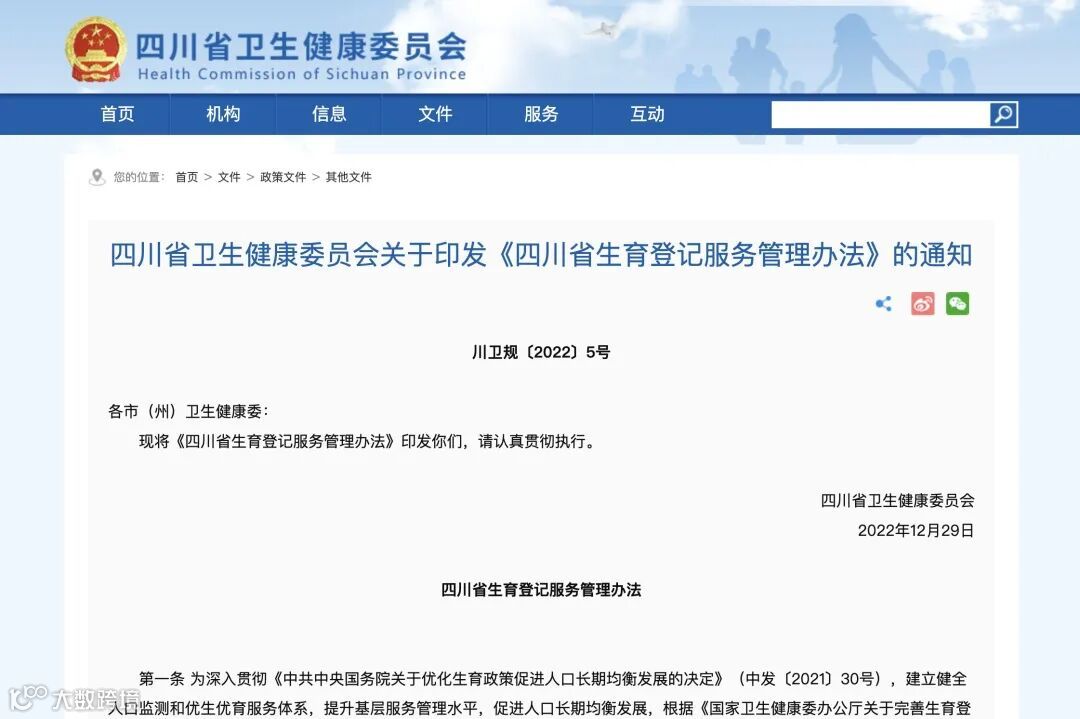 2022年6月,陕西省卫健委发布《陕西省生育登记服务管理办法》,其中明确“夫妻生育子女的,应当在怀孕后至孩子出生六个月之内办理生育登记。其它情形生育子女的,也可予以生育登记”。