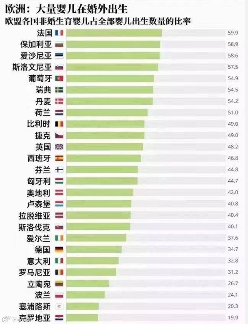 近年来,法国和北欧国家的非婚生子女比例已超过新生儿的一半。