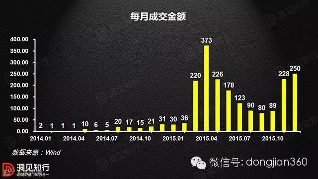 挂牌公司数量激增的同时,新三板成交量也明显扩大。2014年之前,新三板成交量微乎其微,直到2014年8月做市制度成功实施后交易量才逐步放大。2015年3月,伴随着A股市场的狂热,新三板也出现了373亿元的月度成交天量。