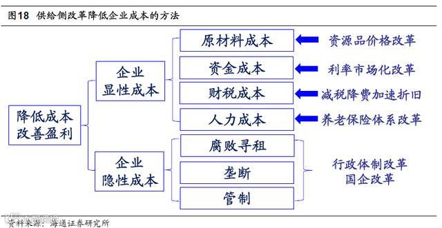 我们预计,未来将从以下四个方面降低企业显性成本:一是继续推进资源品价格改革,降低企业原材料成本;二是实施减税降费和加速折旧,降低企业财税成本;三是推进利率市场化,结合降息降低企业财务成本;四是实施养老保险体系改革,降低企业人力成本。