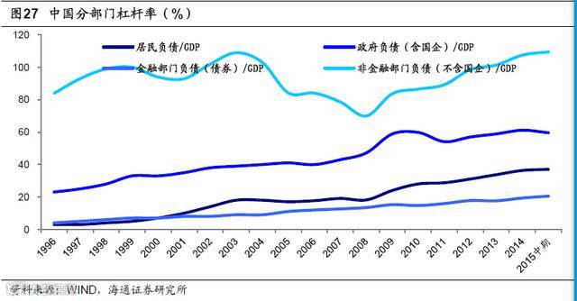 中国式转杠杆。供给侧改革同样将对中国杠杆率产生影响:产能去化意味着企业部门杠杆率将持续下行,户籍制度改革和二三线城市地产库存去化意味着居民部门杠杆率将持续下行,减税降费和财政支出提升意味着政府部门(主要是中央政府)的杠杆率将大幅上升,而防范化解金融风险和企业降低财务成本意味着金融部门杠杆率将缓慢上升。