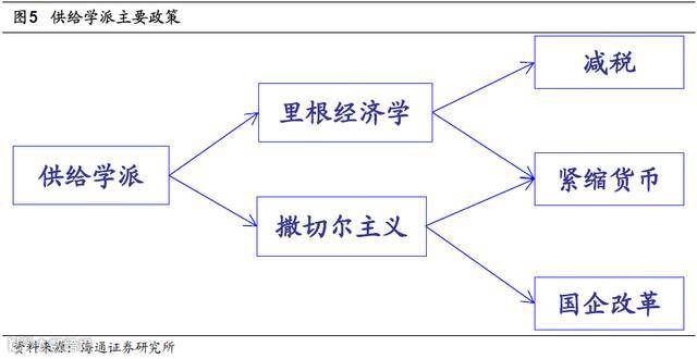 来自供给学派的典型实践。纵观世界经济历史,美国曾在20 世纪70 年代陷入滞胀,英国也在20 世纪70-80 年代面临滞胀叠加结构性问题的窘境。作为供给学派的典型实践,“里根经济学”(Reaganomics)和“撒切尔主义”(Thatcherism)分别采用减税和国企改革等措施帮助经济走出衰退的泥淖。