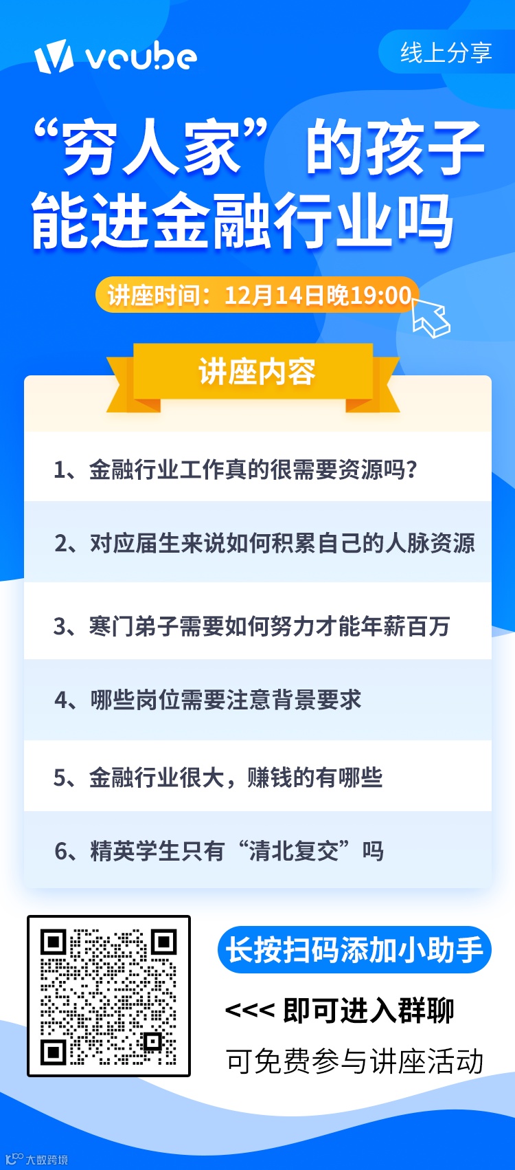 从国内投行来看,里面有很多VIP,但是绝大部分还是老百姓家孩子的。