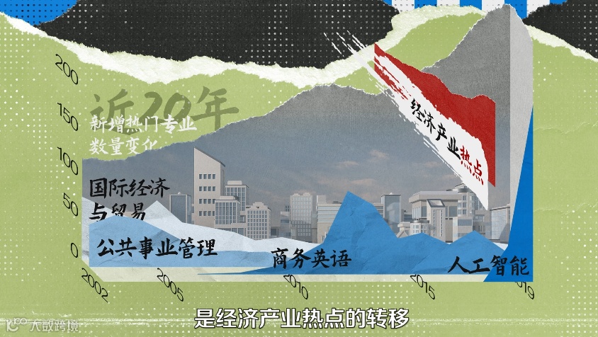 这是近20年新增热门专业的数量变化。热门专业的更迭背后,是经济产业热点的转移。