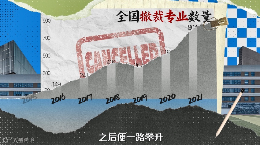 据教育部统计,去年高校专业撤销了804个,涉及的大学从985到民办三本都有。这个数据在2014年以前基本在100个以下,之后便一路攀升。