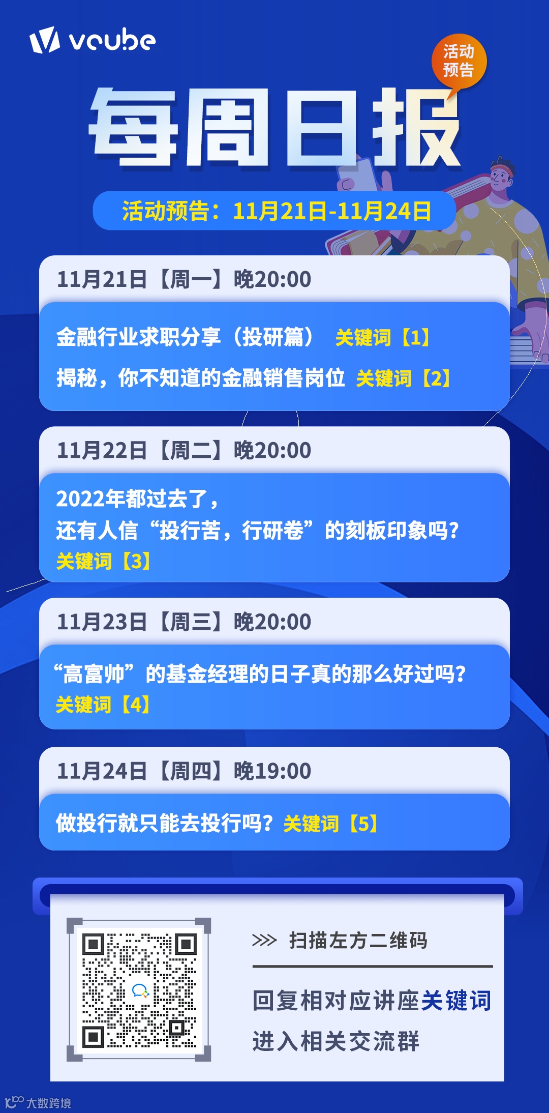 (金融小伙伴,快进你的职业成长。想要找金融实习、求职/跳槽到金融行业的朋友们,可添加VX:feifan00999)