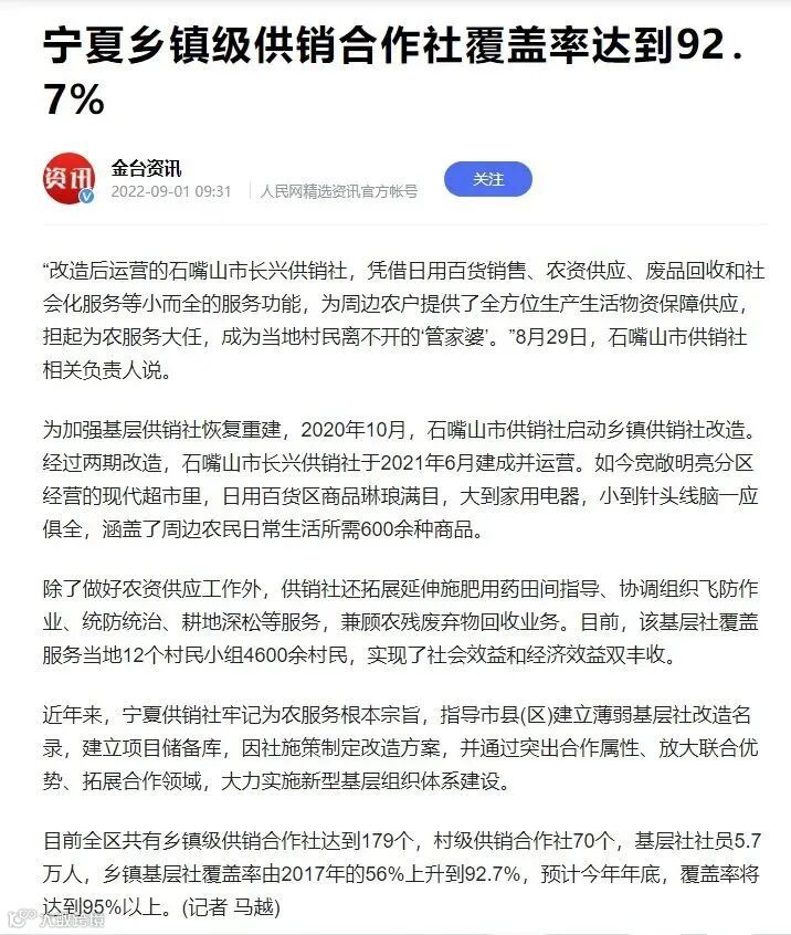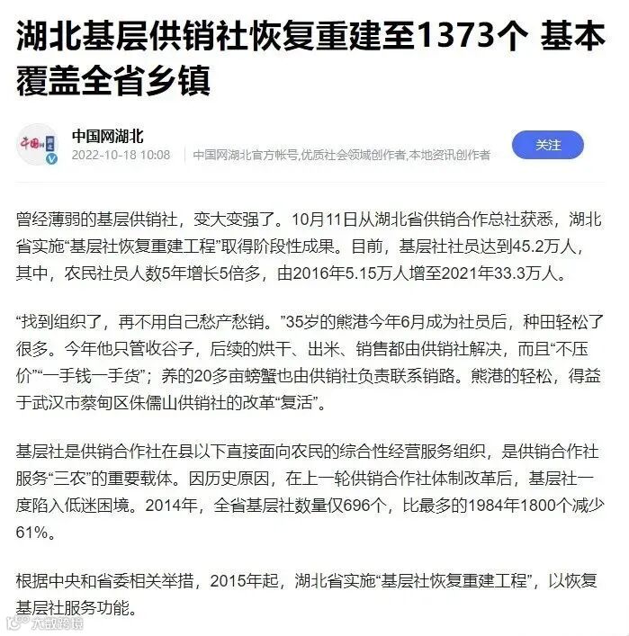 这还是因为《湖北日报》发布了一则名为《湖北基层供销社恢复重建至1373个,基本覆盖全省乡镇》的报道。