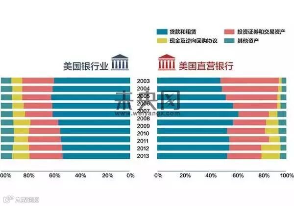 下面我们通过16家美国直销银行的财务数据、营销策略等方面与美国整个银行业对比,来总结直销银行本质特征、优势以及未来发展趋势。