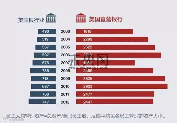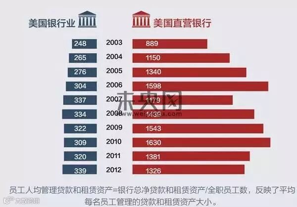 (1)除去金融危机的特殊时期,直销银行的人均利润均高于整个银行业,且逐年增长;