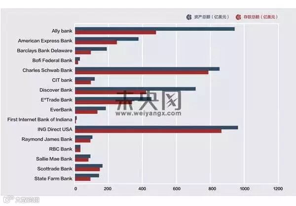 美国16家直营银行资产和储蓄总额