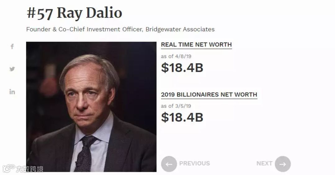 他是全球最大对冲基金桥水(Bridgewater)的创始人,也就是说比索罗斯的量子基金还要庞大。