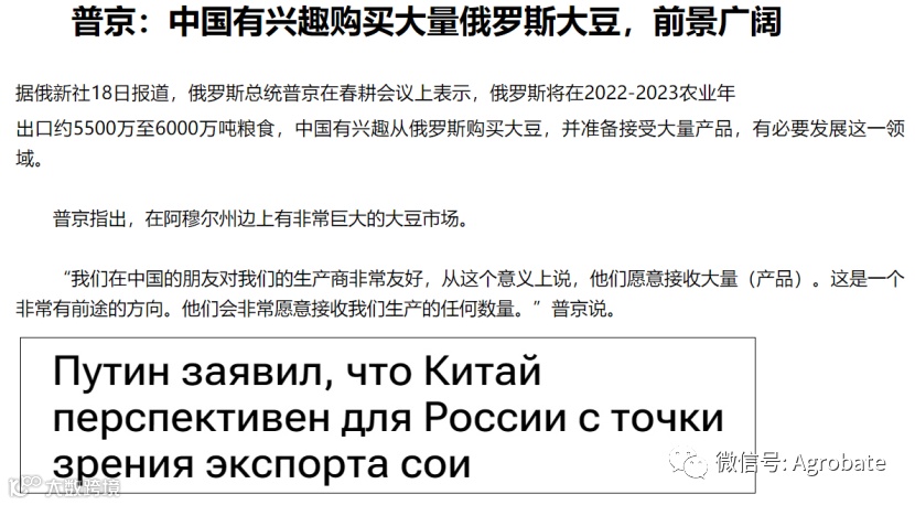 事实上,早在2019年中俄就签署了关于深化大豆合作的发展规划,就扩大大豆贸易、深化种植、加工、物流、销售、科研等全产业链合作达成重要共识,并提出力争到2024年,俄大豆对华出口将达到370万吨的目标。