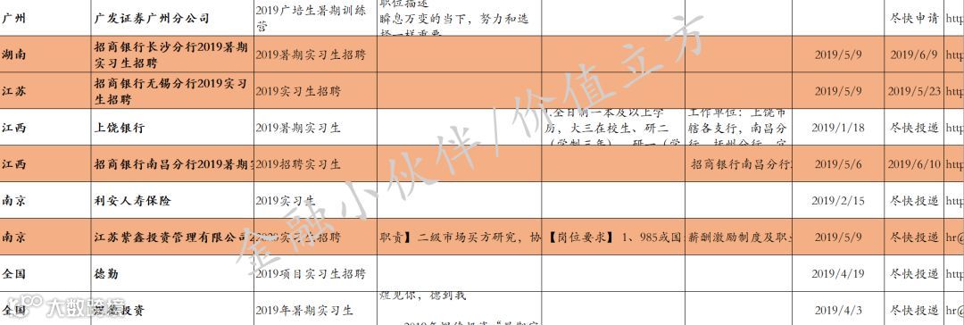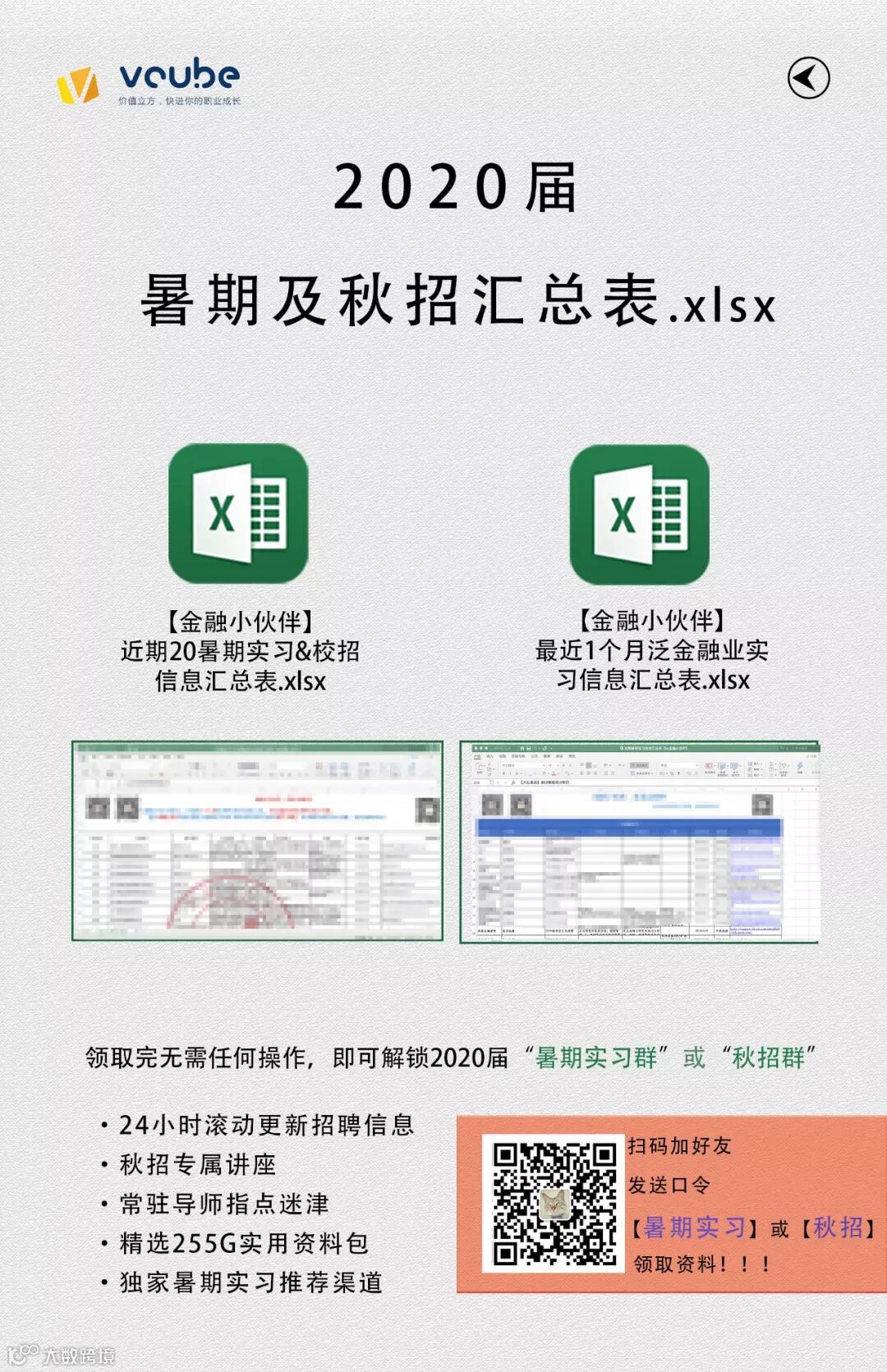 面向2020届!财通、招行、工商、上银、海通...免费领取各大名企暑期&秋招时间表.xlsx 金融小伙伴career