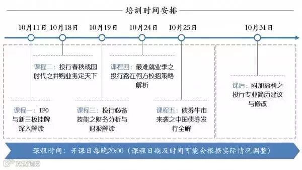 由于导师都为国内顶尖投行的资深工作人员,因投行工作的特殊性,导师时间安排方面会存在一定的不确定性(甚至临时更改),具体课程安排届时可能会微调。我们尽量提前合理规划时间,及时通知学员,望大家理解。
