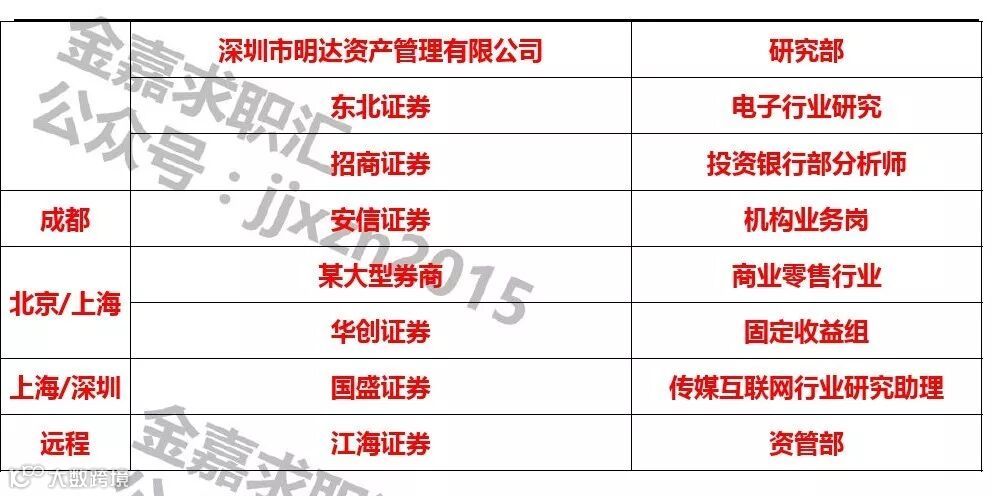 2、专业:金融、财会、经济、新闻或工程类专业有意转行金融(cfa、cpa通过或部分通过的优先);