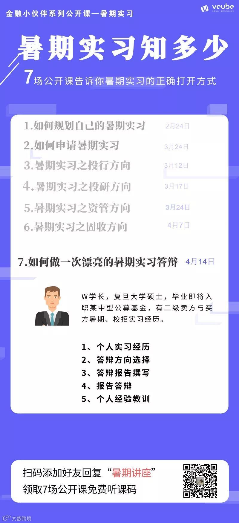 这次讲座也是金融小伙伴【暑期实习知多少】系列公开课的最后一期啦。此前两个月内,我们分别开展了“暑期实习规划”、“如何申请暑期实习”、“暑期实习投行方向”、“暑期实习行研方向”、“暑期实习资管方向”、“暑期实习固收方向”,总共邀请到了七位优秀的学长学姐,带来的分享都非常有用,真的让很多同学大开眼界。