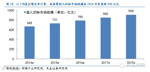婴儿:重点关注奶粉、婴儿日常用品、儿童用药。生产后,奶粉和婴儿的日常用品的消费将增加,奶粉和生活用品的生产商将最先受益。根据前瞻产业研究院发布的《2015-2020年中国奶粉行业市场调研与投资预测分析报告》数据显示,2013年,我国婴幼儿奶粉市场规模约为600亿元,随着我国第四个人口小高峰来临,以13%的复合增长率测算,2018年,婴幼儿奶粉市场规模将增长至900亿元。同时,网上购物的普及,令提供母婴用品的电商平台将迎来大量需求。由于抵抗力差,婴儿生病时常发生,因此,儿童用药的需求也将随着婴儿数量的增长而提振。因此,在婴儿时期,重点关注奶粉、婴儿日常用品、儿童用药生产商以及提供母婴用品的电商平台。