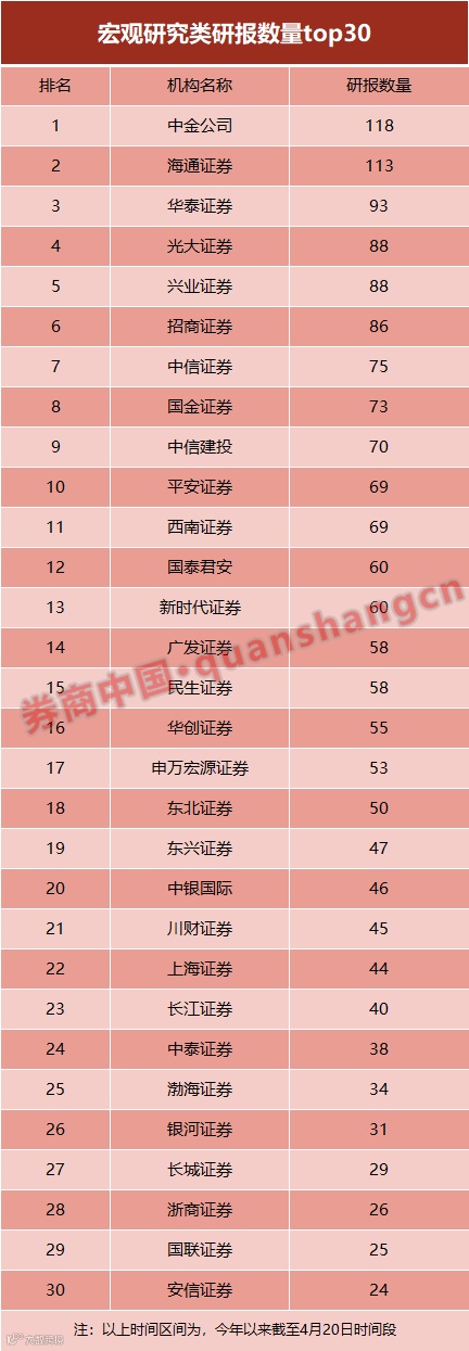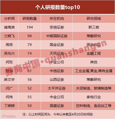 不过也有10家券商发布研报数量不足10篇,据朝阳永须统计数据显示,今年来,国都证券、华林证券、英大证券、宏信证券、财达证券等券商发布的研报数量均为个位数。