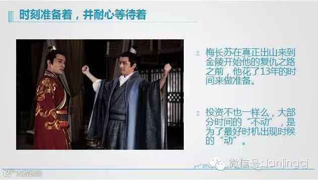 而在梅长苏回到金陵之后的步步棋局都离不开基准的信息,尤其是琅琊阁的信息。现在的投资世界里,不缺信息,缺的是静下心来分析信息。例如公司公告、财报,真的有几个投资者认真看过呢?