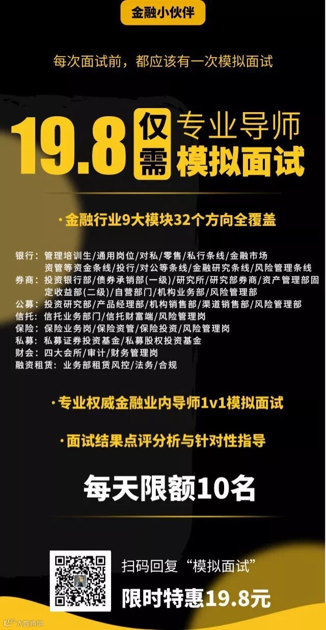 大三可以找的实习有四大、快消、咨询等行业,因为他们都对候选人的学历要求比较低。这部分同学可以尽早打磨一下自己的笔面试能力,不同于社团面试,机构的面试要涉及更多专业性的东西,在这方面金融小伙伴也有相关课程服务,比如1V1模拟面试。