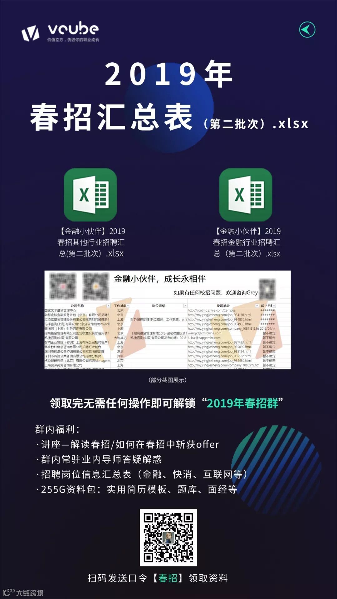 最后。再次吹爆春招时信息的重要性,需要的同学快来领取吧!领取完,你还将同步解锁【金融小伙伴 — 2019年春招群】,与更多小伙伴交流经验和情报,一起加油。