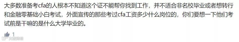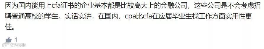 表面上看,多一个CFA证书当然没坏处,哪怕一直用不到,也还能拿出来垫桌脚呢。但这里存在一个“机会成本”的问题,你为了考CFA所投入的金钱和时间,本可以用来做其它事情。到底哪个价值更大,哪个对找工作更有帮助,在每个人身上是有不同体现的。