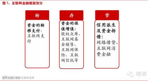 一是明确了互联网金融的定义和具体业态。互联网金融是传统金融机构与互联网企业利用互联网技术和信息通信技术实现资金融通、支付、投资和信息中介服务的新型金融业务模式。互联网金融的主要业态包括互联网支付、网络借贷、股权众筹融资、互联网基金销售、互联网保险、互联网信托和互联网消费金融等。结合我们前期我们互联网金融小组对互联网金融的框架划分,其分类基本如下: