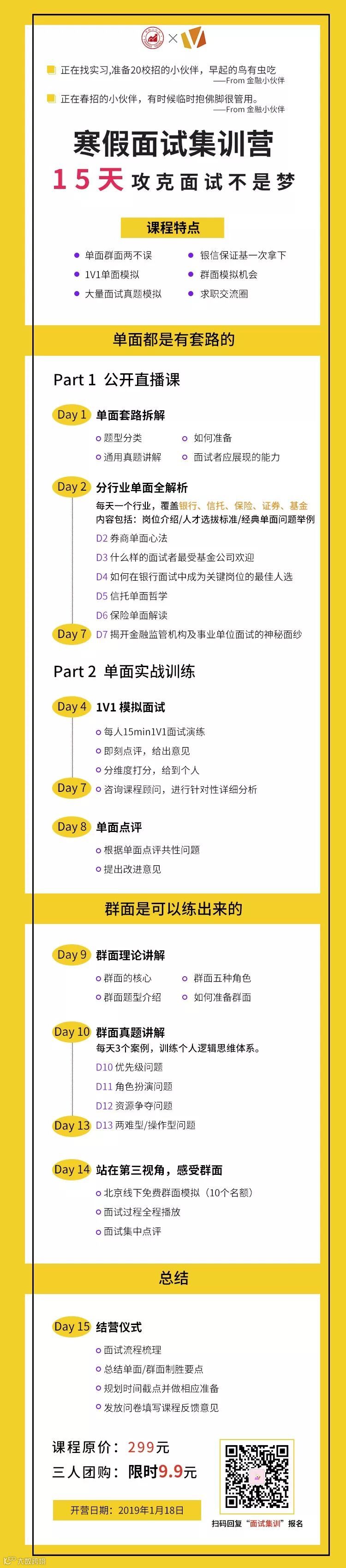 小提示:如果已经添加以下Kevin学长、Miss金融张、金融Summer、小金子、金融人、Grey、求职必备Darlene酱,任一课程顾问的微信,可直接回复“面试集训”,报名课程。