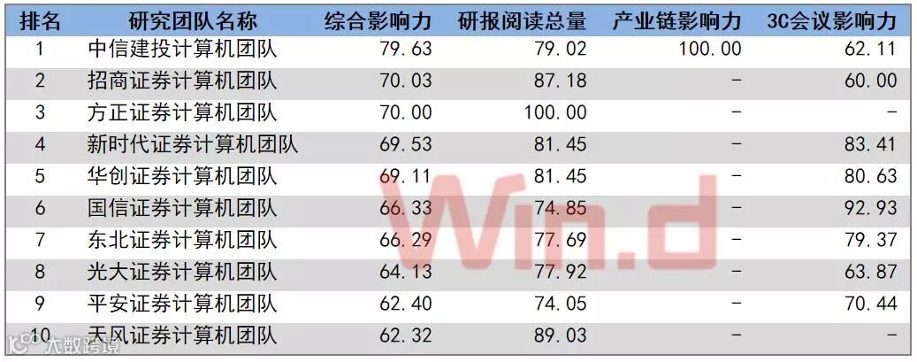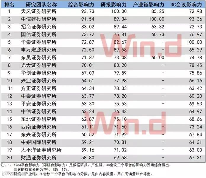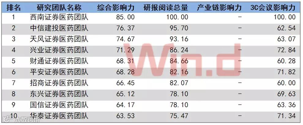 以下我们从研究报告、产业链、3C会议三个维度将券商研究团队名称进行综合排行。