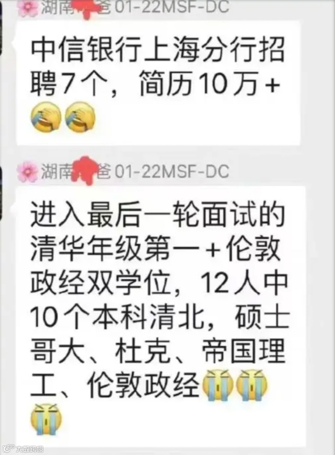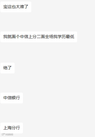 我们一个本硕985的学员给我说,他在面试中信银行上海分行的时候,二面是他们那组学历最低的。
