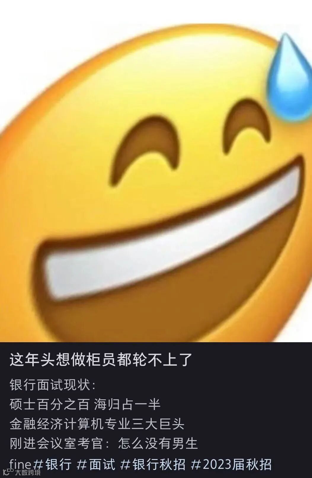 久久在面试一家银行的北京分行的时候,一起面试的不是北京985本+两财一贸硕,就是QS前50的海硕去竞争柜员的岗位。