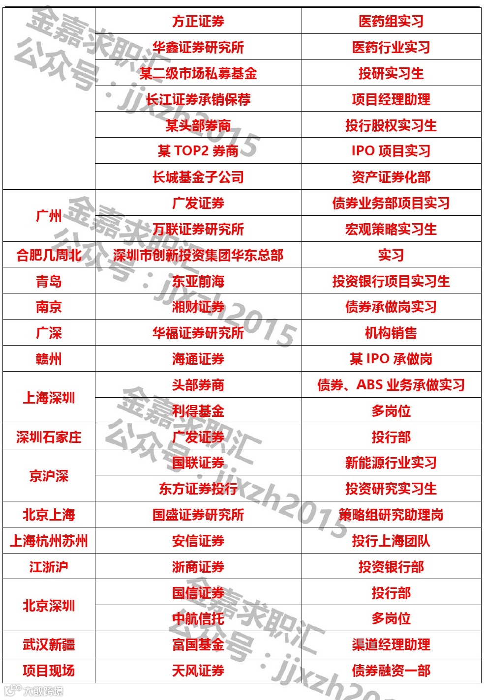 3、对投行及IPO业务有一定了解和兴趣,踏实稳重,能接受出差和一定程度的加班,有相关实习经历优先;