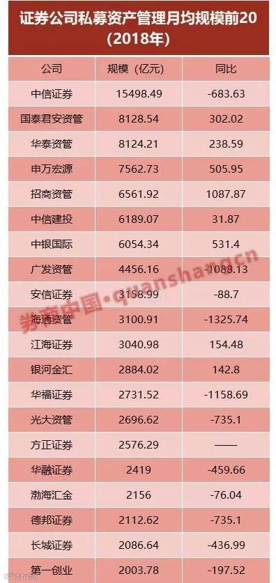 从前20家券商资管规模来看,整体上通道业务和主动业务都在下降,月均规模同比下滑的有10家,其中,海通资管、华福证券和广发资管规模下降超过1000亿元。