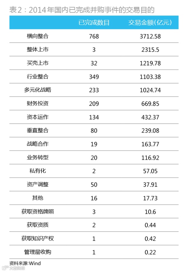 数据显示,越来越多的上市公司选择了通过并购成长,2014年国内已完成的1305个并购案例中,有62%的并购主体是上市公司。安信证券的数据略有不同,2007-2013年国内发生的并购事件中,有数量占比约71.6%的并购事件与上市公司相关,仅28.4%的并购为非上市公司发起。2014年,上市公司在并购市场的主力军角色得到进一步强化,上市公司参与国内并购案的比例上升到74.8%。两个统计口径虽有不同,但上市公司成并购重要主体是不争的事实。